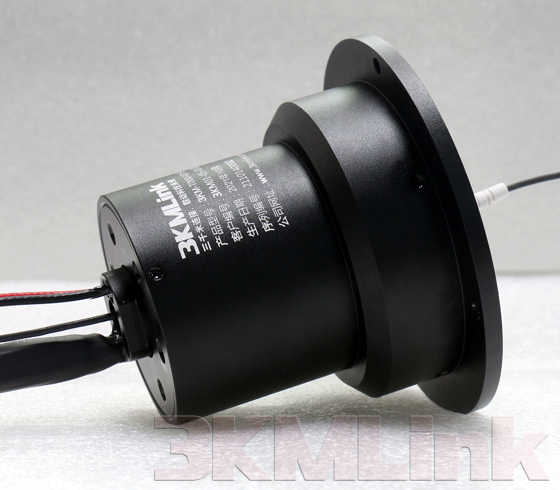 3KM T-series slip ring is designed with a through hole for shaft mounting, the through hole sizes are from 12.7mm to 124.6mm. it could be applied to transmit power, signals, RF, gas and fluid when the devices require 360° rotating.